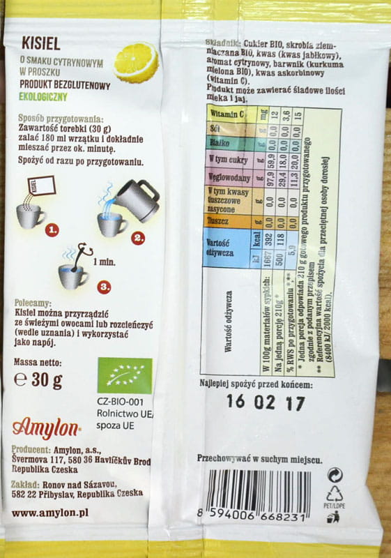 Bezglutenowy kisiel cytrynowy Bio w proszku od producenta Amylon.