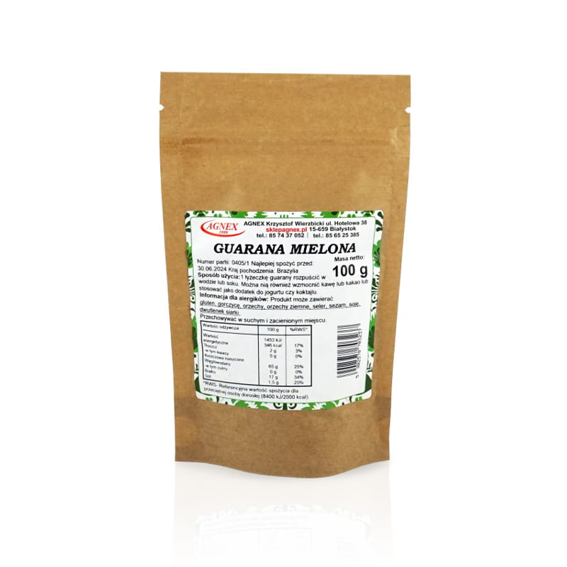 Guarana mielona, naturalna kofeina, na energię, 100g