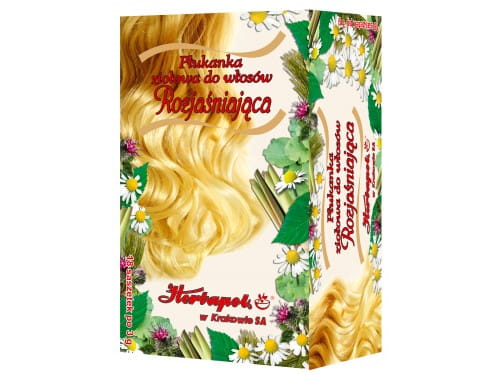 Płukanka ziołowa do włosów rozjaśniająca Herbapol wzmacnia cebulki włosów, pobudza wzrost, podkreśla naturalny kolor włosów. Regularne stosowanie płukanki zapobiega wypadaniu, pielęgnuje włosy i łagodzi podrażnienia skóry głowy.