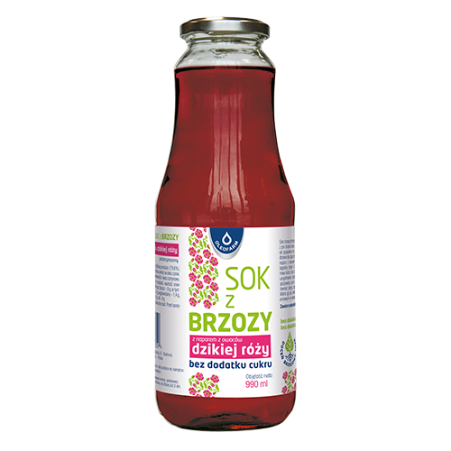 Ekologiczny sok z brzozy z naparem z owoców dzikiej róży